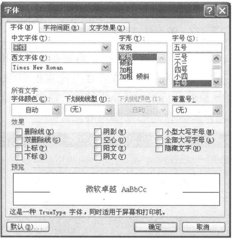 (1)选定要设置的文本,执行“格式”→“字体”菜单命令,弹出如图3-14所示的“字体”对话框。