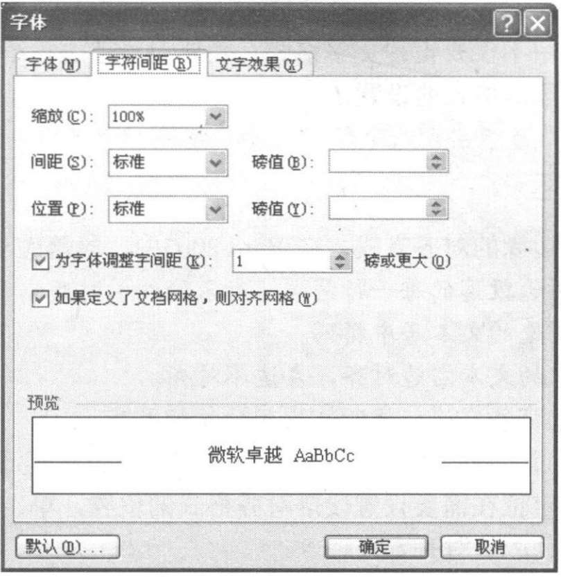 在“字体”对话框中单击“字符间距”标签,如图3-15所示,即可对文字之间的间距和位置进行设置。