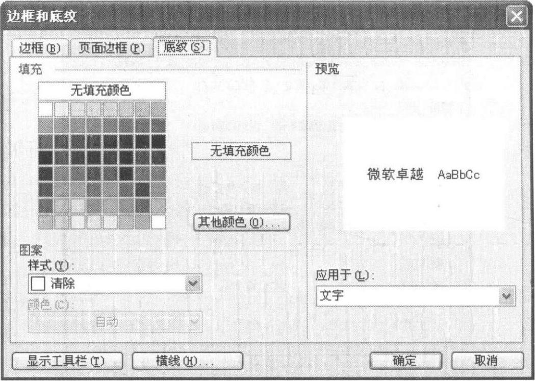 (1)在图3-18中单击“底纹”标签,如图3-19所示。