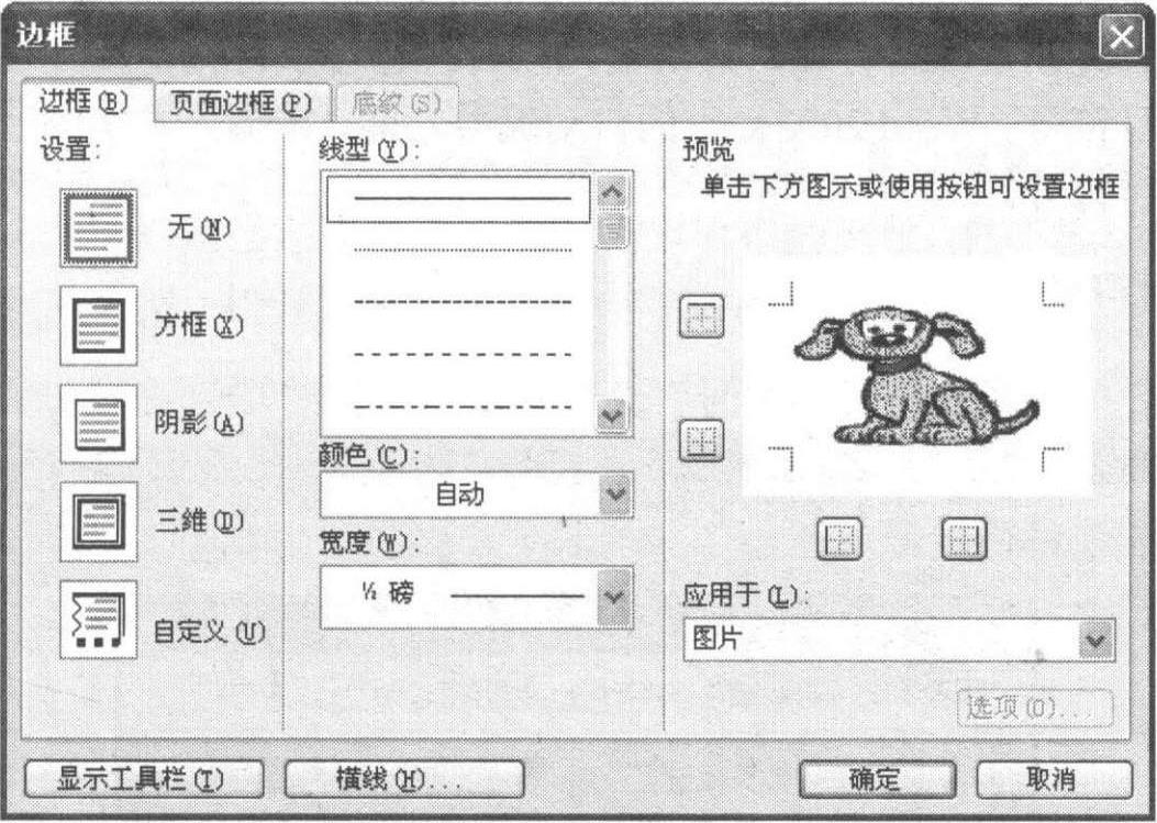 (2)执行“格式”→“边框和底纹”菜单命令,再单击“边框”标签,如图3-18所示。