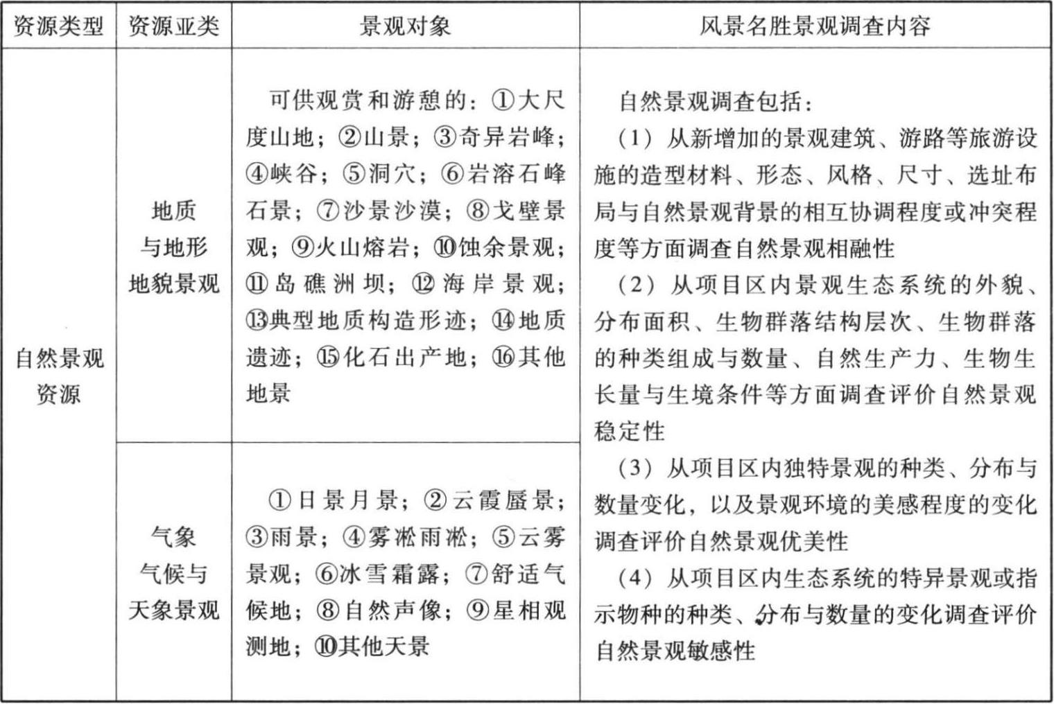 风景名胜自然景观现状调查主要包括自然景观的相融性、稳定性、优美性、敏感性、变化率、生态服务功能等方面的基本特征调查: