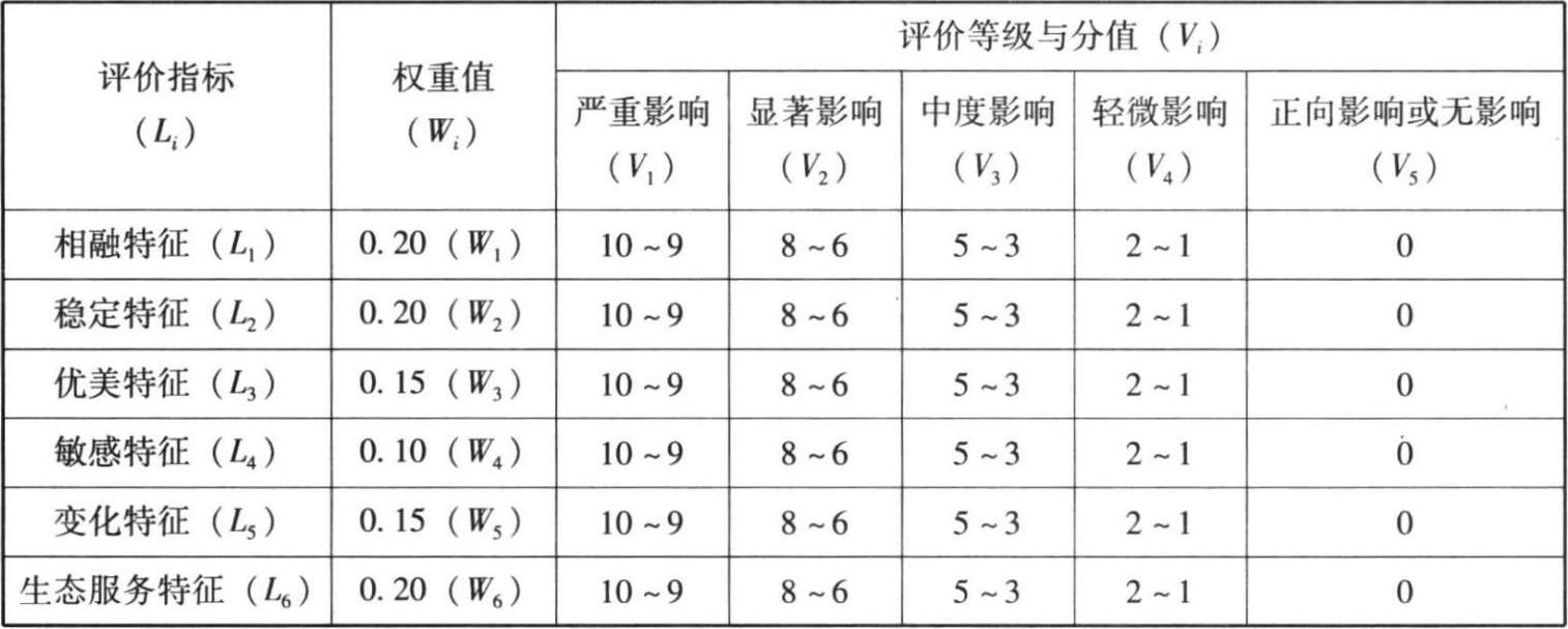 具体参考表3-2“自然景观影响评价指标分级表”和表3-3“自然景观影响评价等级表”。