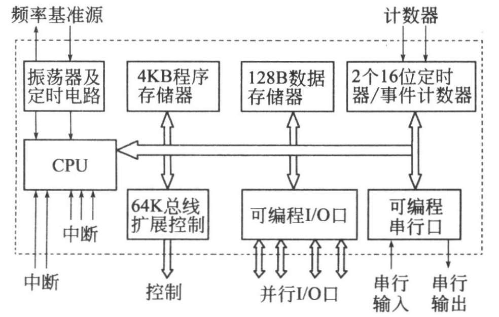 以上所有组成部分都是通过总线连接起来,从而构成一个完整的单片机。系统的地址信号、数据信号和控制信号都是通过总线传送的,总线结构减少了单片机的连线和引脚,提高了集成度和可靠性。