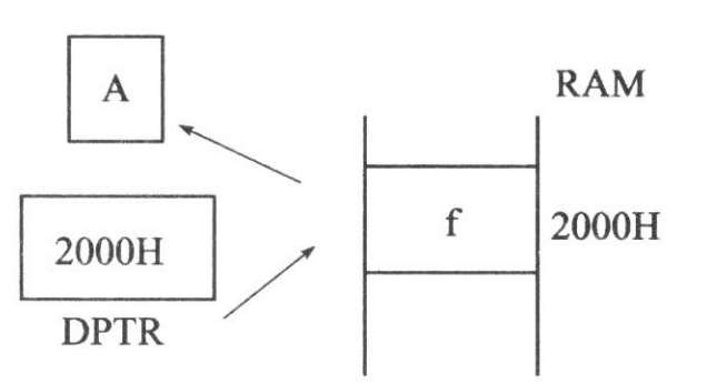 就是把片外数据存储器中2000H中的数据放到累加器A中。如图2-14所示。