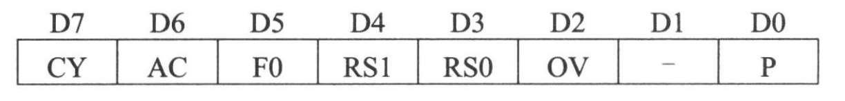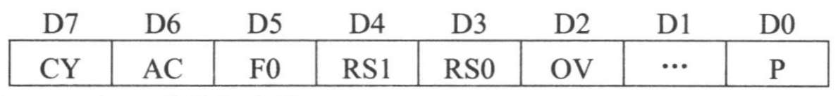 ①程序状态字(Programe StateWord,简称PSW),地址为0D0H,可位寻址。PSW的各位定义如下: