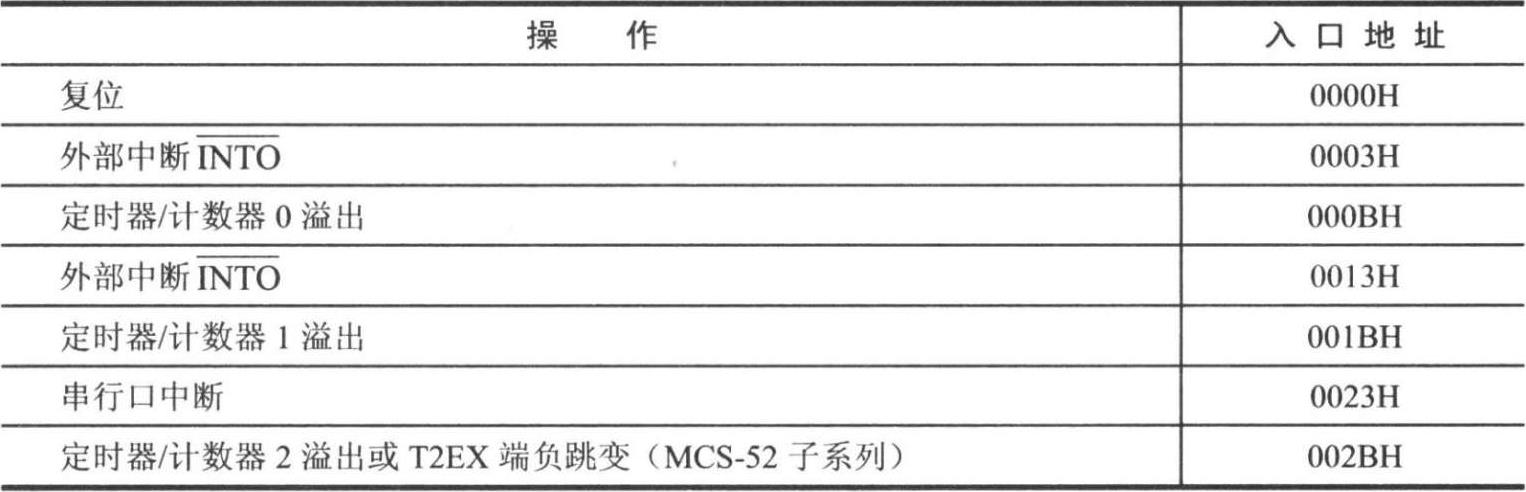 表 2-3 MCS-51单片机复位、中断入口地址