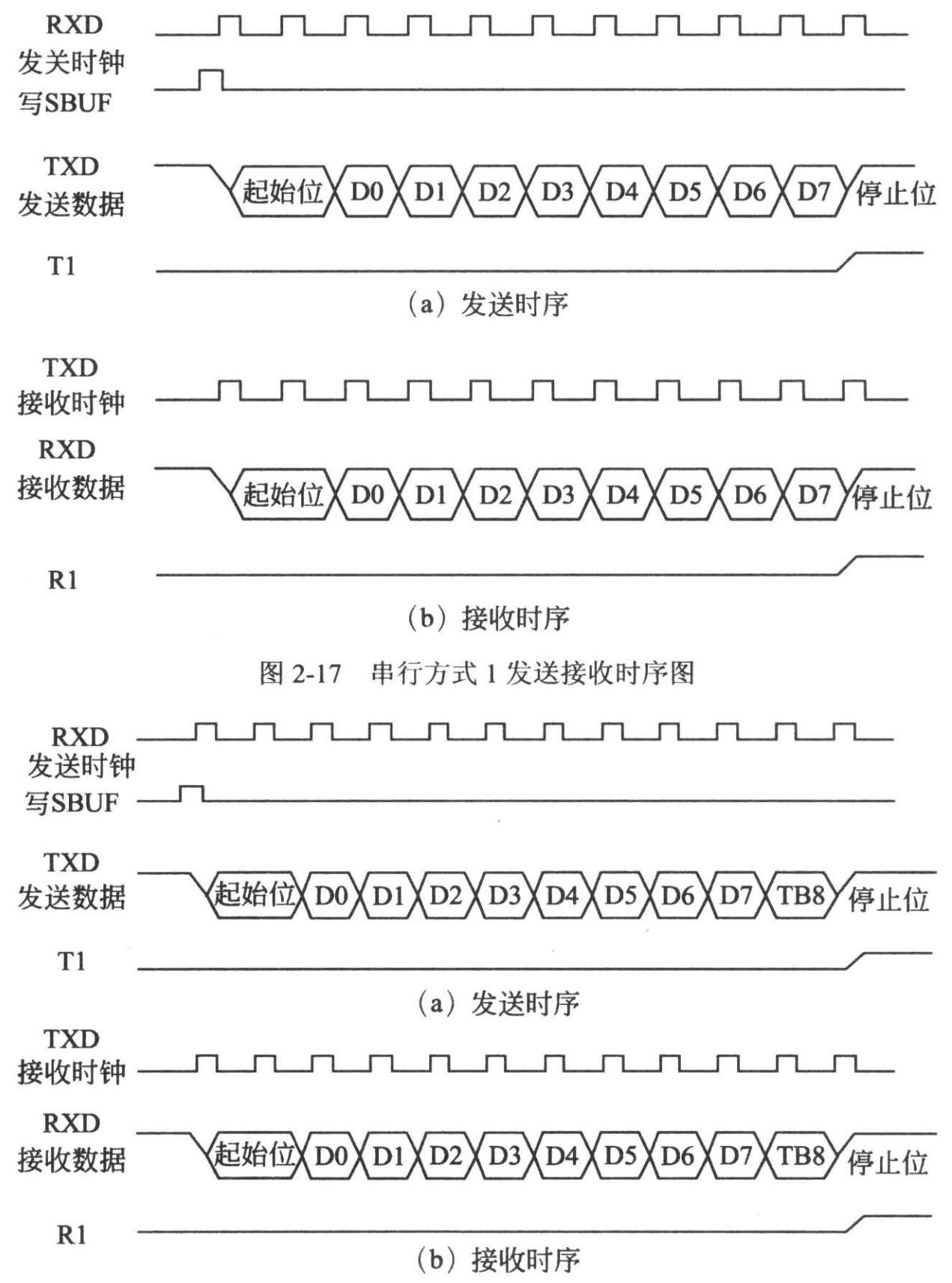 串行方式 1 的发送和接收过程的时序如图 2-17 所示。