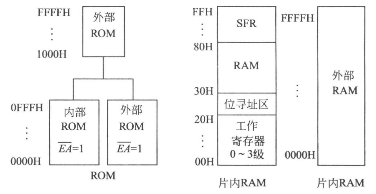 图 2-15 8051 存储器组织结构