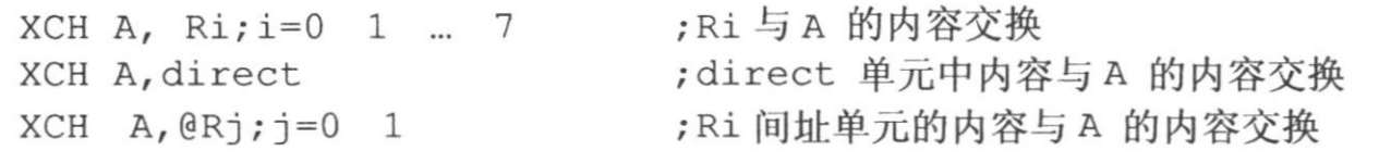 交换指令实现两操作数之间数据的双向传送,两操作数互为源地址与目的地址,指令执行后,两操作数的内容互换,交换指令共有5条,均以累加器为一方。
