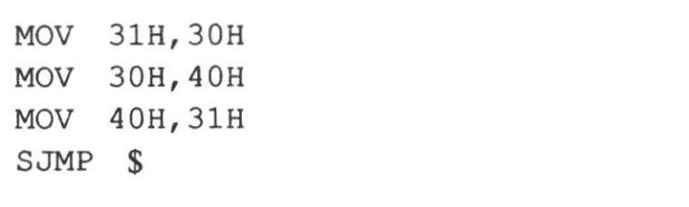 【 例3-6 】将片内RAM30H单元与40H单元中的内容互换。