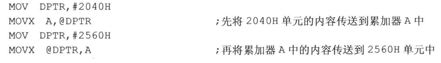 【 例3-3 】把外部数据存储器2040H单元中的数据传送到外部数据存储器2560H单元中去。