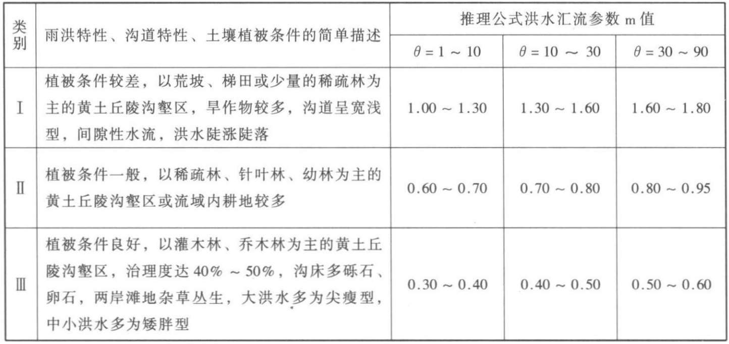 注 表 4-1 可作为在无资料条件下确定 m 值的参考,表中 θ = L / J 1/3 , L 、 J 定义同上。