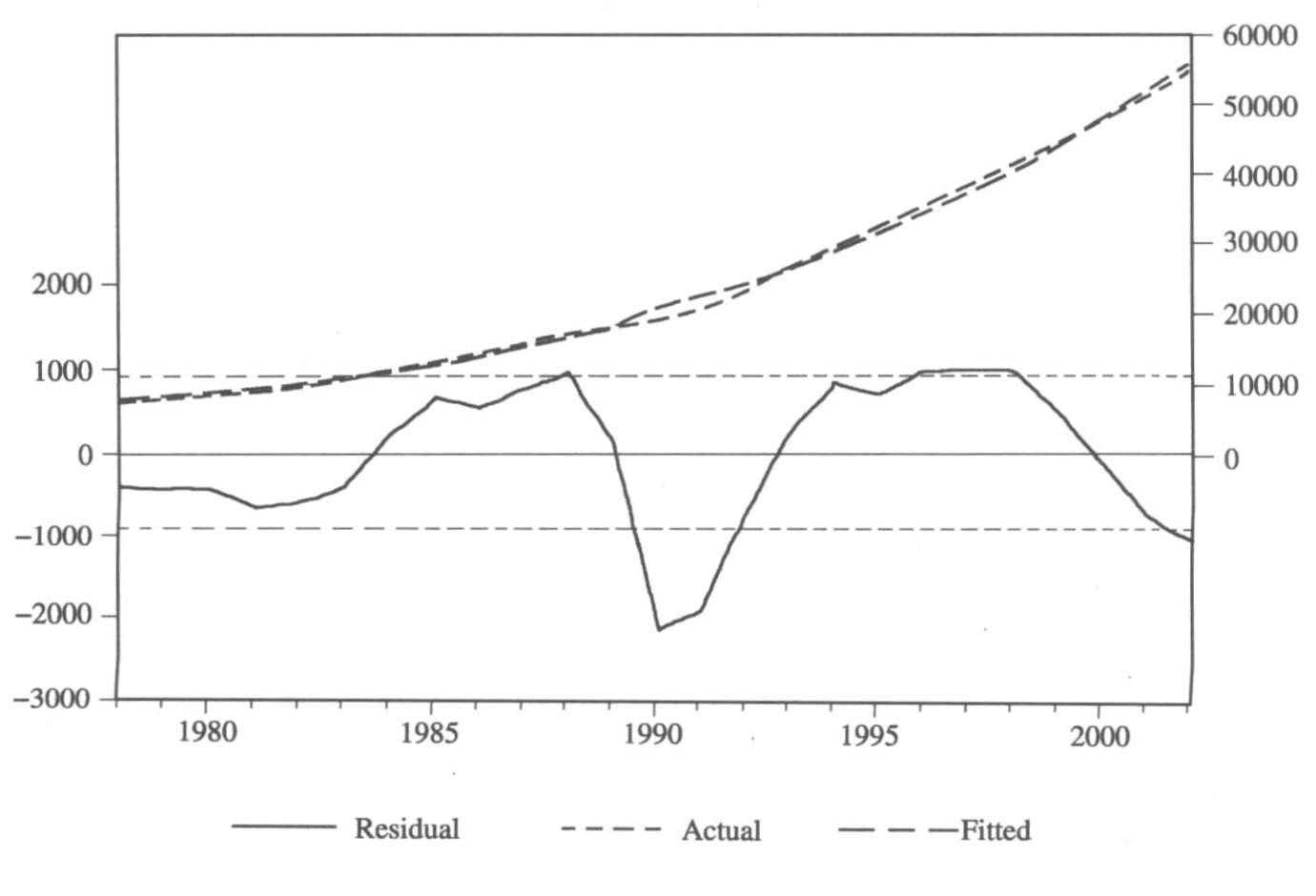 附图1-2 1978~2002年我国的生产函数方程拟合曲线