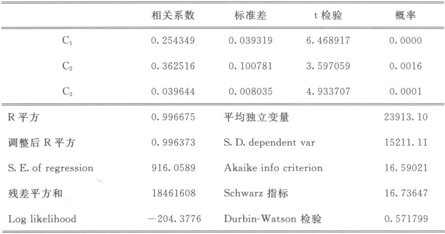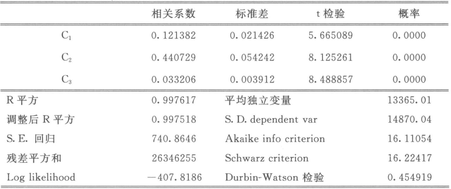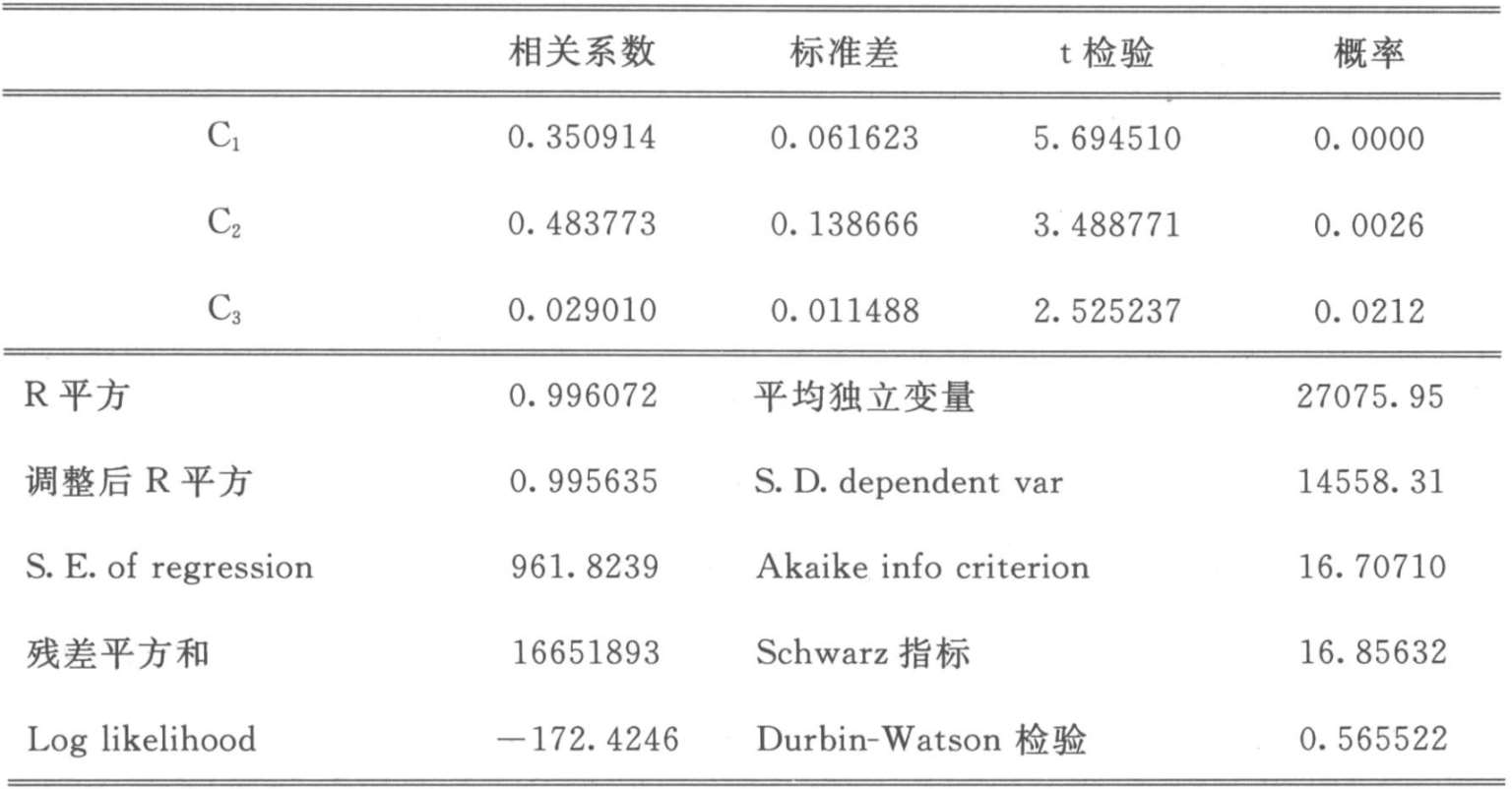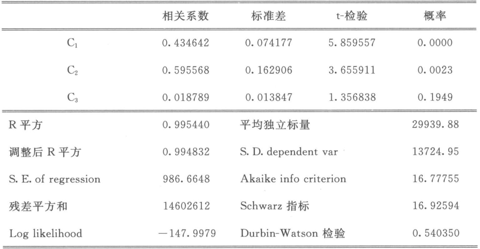 GDP=C 1 ·K C 2 ·L (1-C 2 ) ·e (TM-1952) · C 3 (TM为年份,下同)