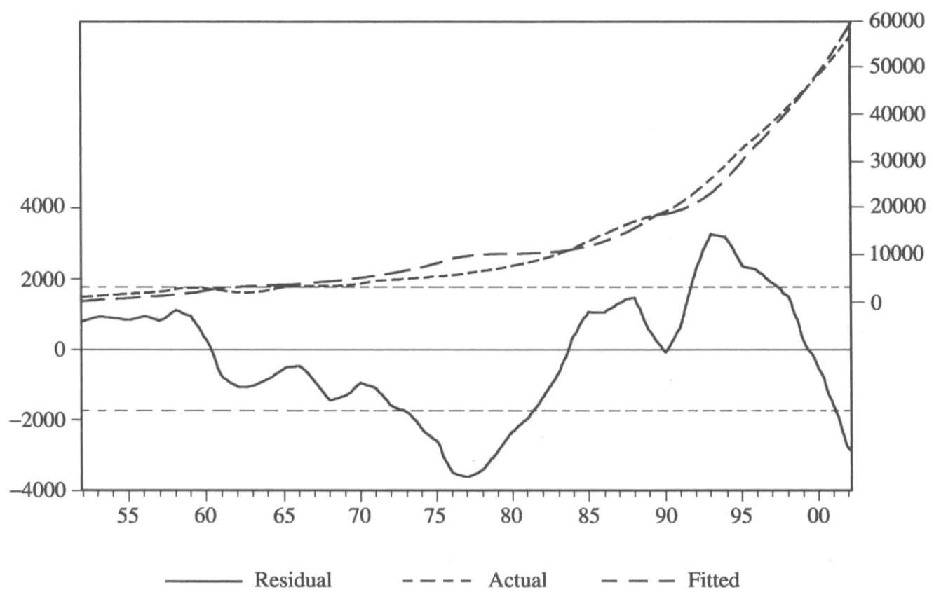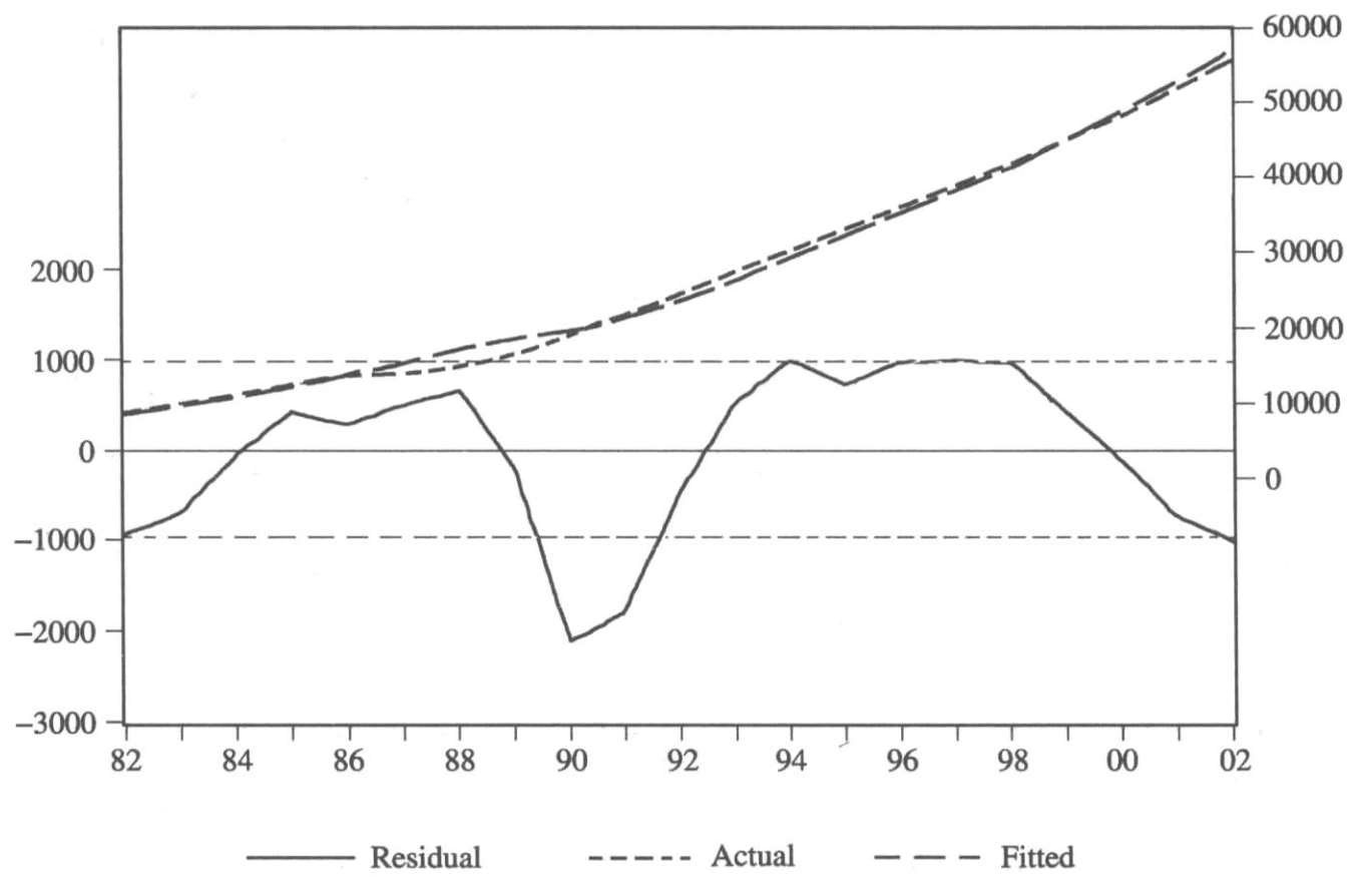 附图 1-3 1982~2002 年我国的生产函数方程拟合曲线
