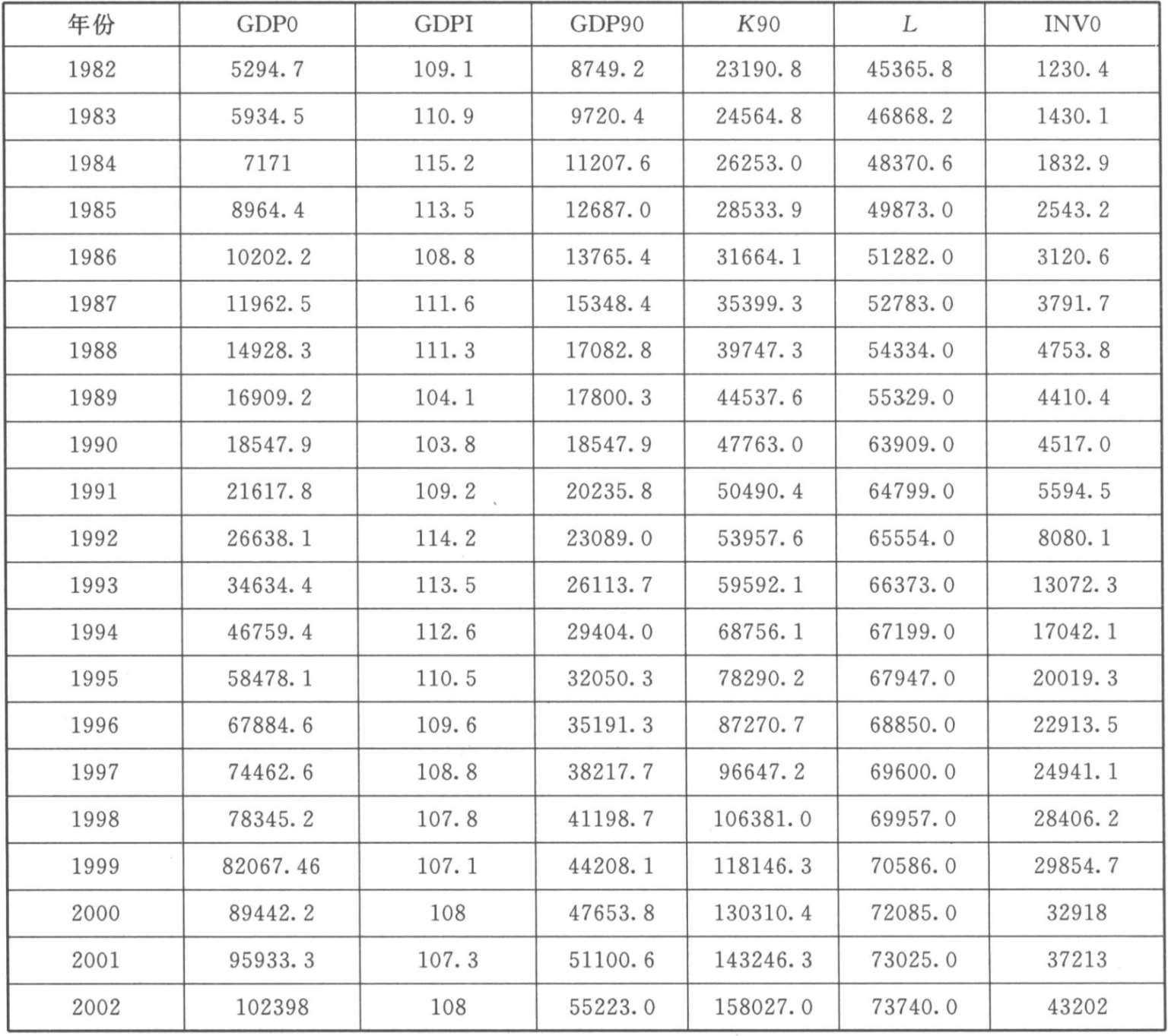 GDP90 为国内生产总值(1990年价格),根据GDPI推算得出;