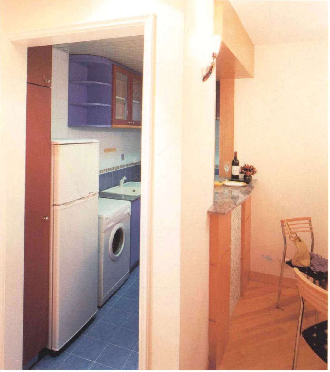 厨房空间较狭长,左右距离只有数格阶砖,所以索性拆去房门,腾出更多的空间摆放厨房用品。