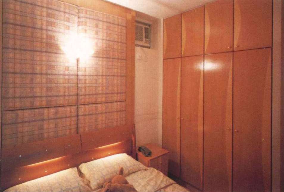 当然,想想而已;其实打从懂得结婚这两个字,就已经暗自决定——若结婚的话,必到红棉道注册。可能就是喜欢红棉这个名称的情意绵绵吧。主人房可不要太过红粉绯绯呀,跟设计师说。当然了,两情长久时,可要踏踏实实呢!所以主人房间色素甚是稳重。不过这并不代表平淡,设计师说嵌上一块床背板,配用格子纹的修饰,然后衣柜图案用上波浪形,出来的效果竟会生动活泼。选一张比较别致的床,床头按一下就可亮灯的;哗,简直是锦上添花。