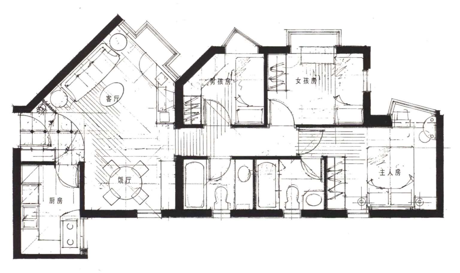 房子正在设计阶段,最先想定案的,是小孩房。多么多么喜欢孩子,最好有一双龙凤胎儿!所以房间也就按这个意念设计吧。女儿是要宠的,面积较大的房间也就理所当然的为女儿而设;男子汉可不打紧,这比较奇形怪状的房间,纵使面积小一点,就给儿子一个发挥无穷想像的机会!一个直角三角形的窗台,可不就是毕氏定理在现实生活中的实践!!