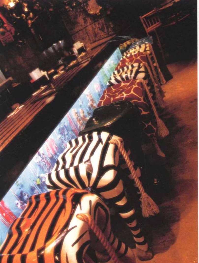 餐厅中最突出的是八个人物化的动物,包括大鳄尼罗、青蛙喳喳、大猩猩班霸、蜥蜴依色、大象猛结他、小猩猩奥芝、鹦鹉妮奥和美洲虎美雅。它们大部分每隔一定时间就会发出叫声和动作,吸引了不少孩子围观。