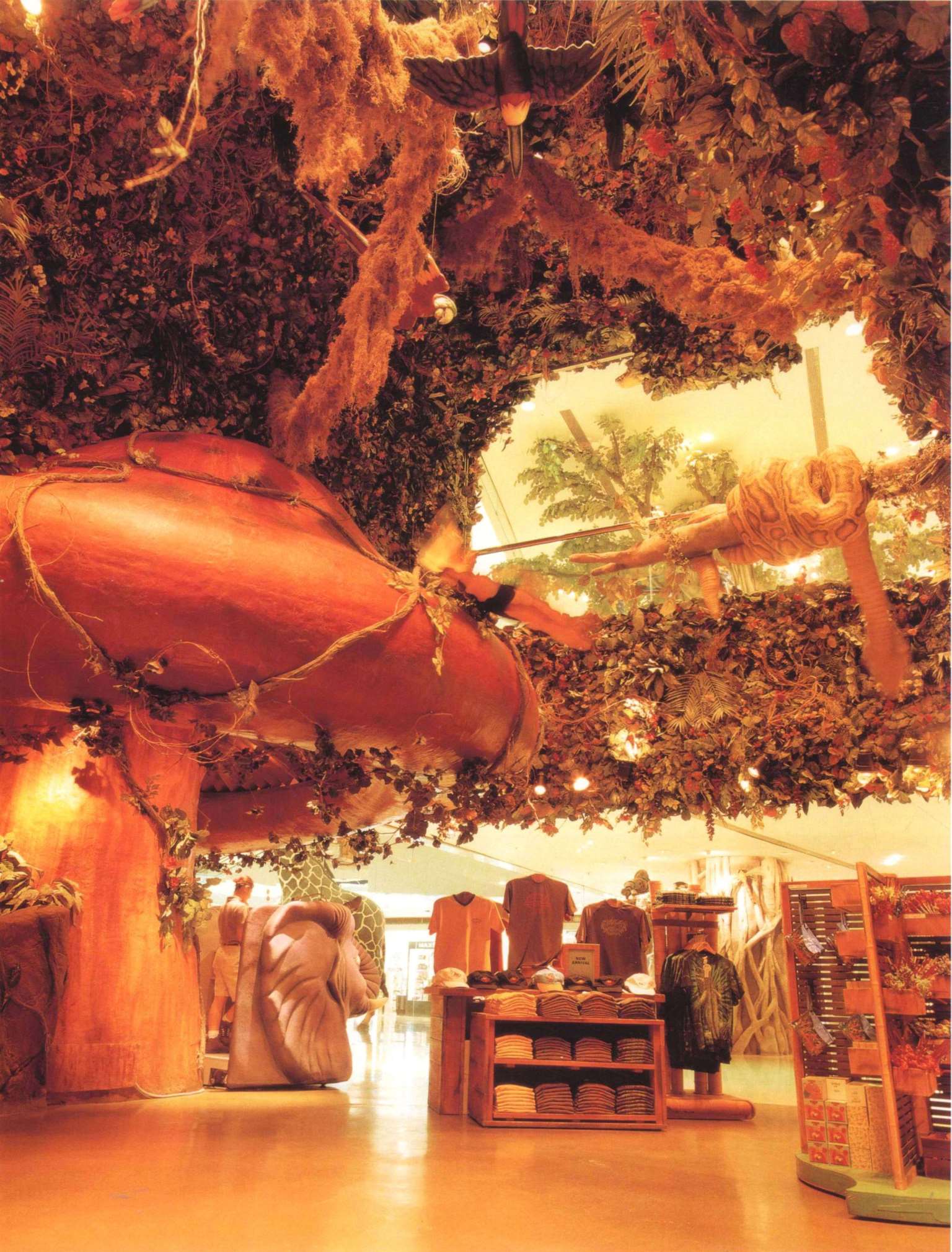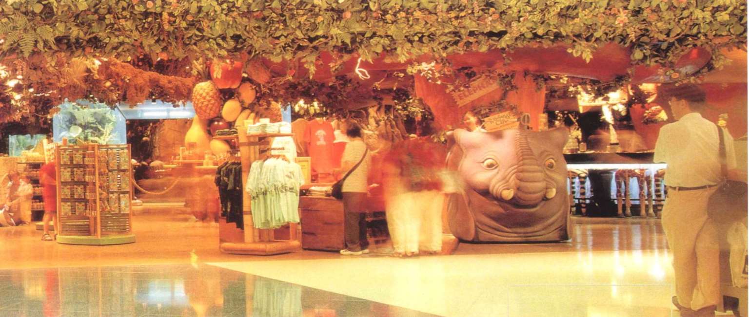 主题餐厅中的零售店扮演十分重要的角色。这里的零售村内有超过400款商品,包括T-shirt、家居用品和玩具等。顾客在浏览商品时,同时可以感受到一些用自然花香提炼出来的香味。