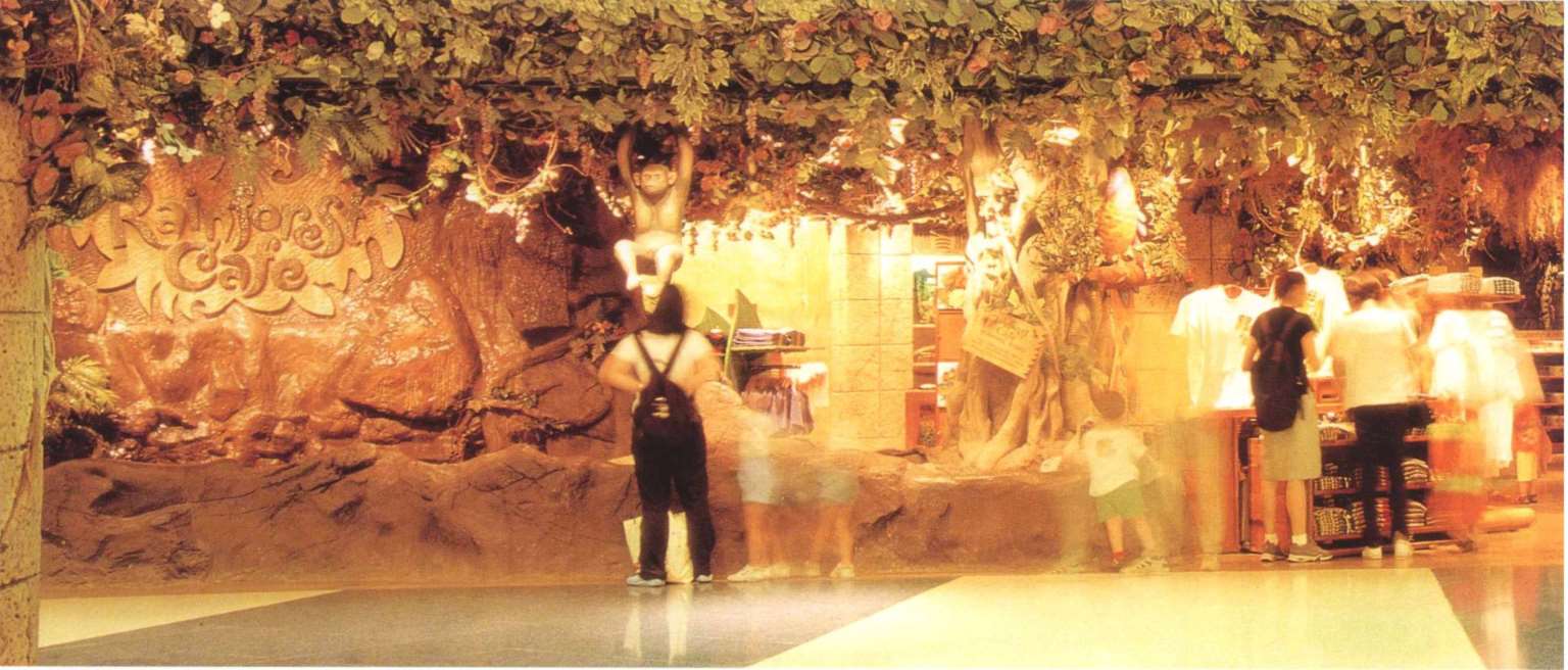 主题餐厅中的零售店扮演十分重要的角色。这里的零售村内有超过400款商品,包括T-shirt、家居用品和玩具等。顾客在浏览商品时,同时可以感受到一些用自然花香提炼出来的香味。