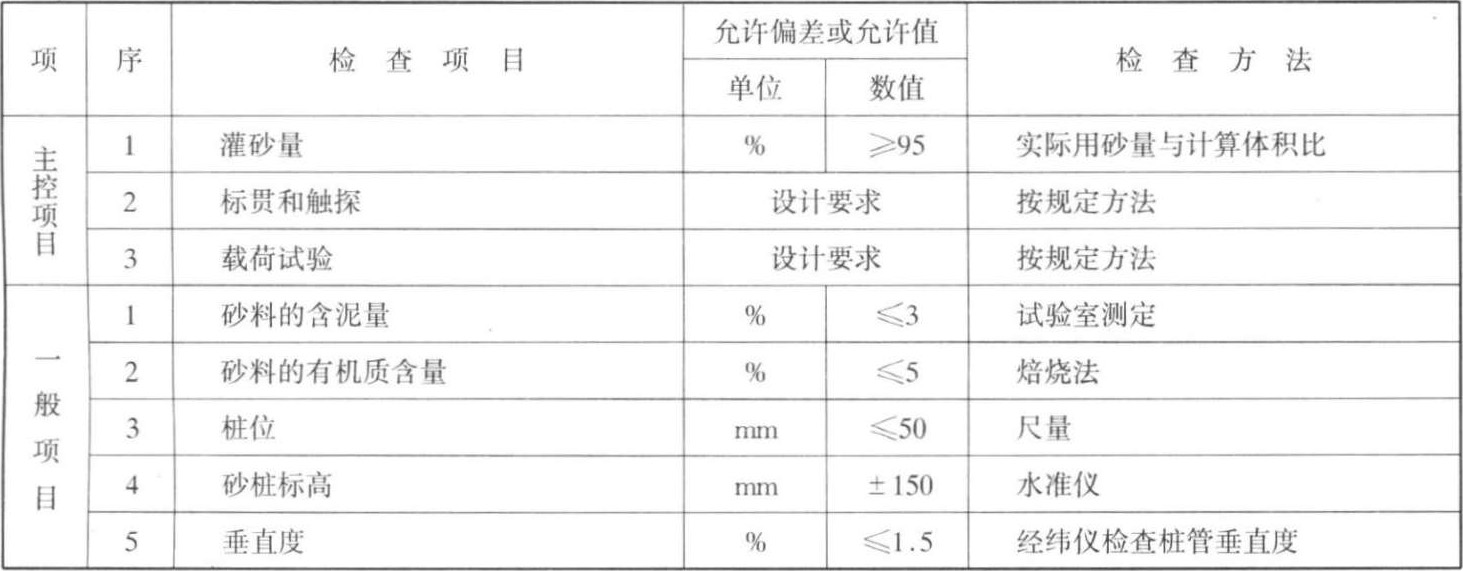 (2)施工中检查每根砂桩的桩位、灌砂量、标高、垂直度等。