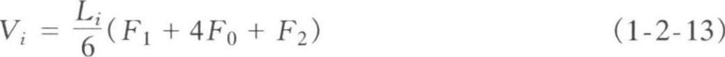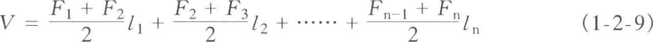 各个断面面积求出后,即可计算土方体积。设各断面面积分别为 F 1 、 F 2 、……、 F n ,相邻两断面之间的距离依次为 l 1 、 l 2 、……、 l n ,则所求土方体积为: