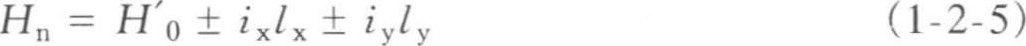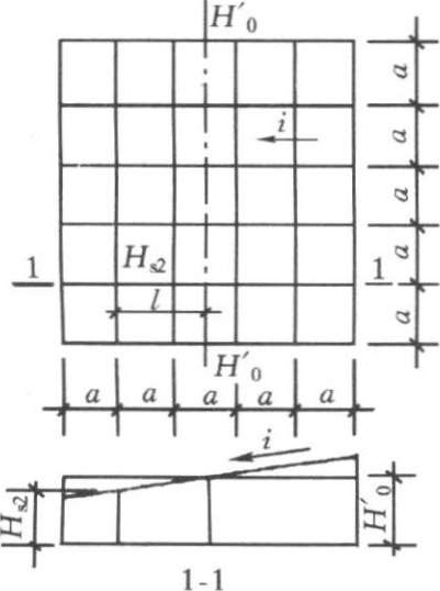 其原理与前相同。如图1-2-3所示, H ' 0 为场地中心点标高,场地内任意一点的设计标高为: