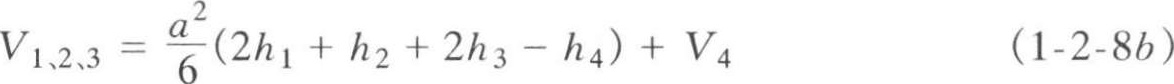 ②使用式(1-2-8)时,填(或挖)方的一个角点为 h 4 ,其余挖(或填)方的三个角点为 h 1 、 h 2 、 h 3 ,且 h 1 、 h 2 、 h 3 、 h 4 须依次排序。