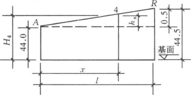 采用插入法时,是假定两等高线之间的地面高低是呈直线变化的。如角点4的地面标高( H 4 ),从图1-2-4中可看出,是处于与两等高线相交的 AB 直线上。由图1-2-5,根据相似三角形特性,可写出: