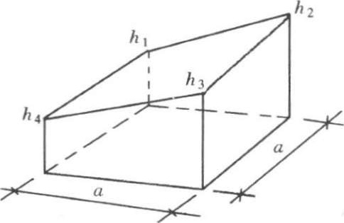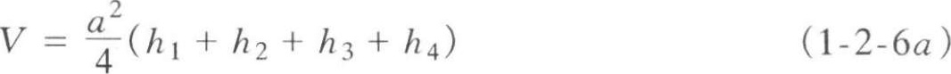 第三种类型的方格,用式(1-2-8)计算,( a 用20m, h 以cm为单位代入),其土方工程量为: