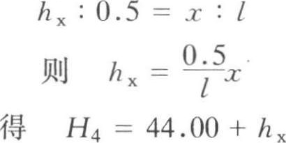 H 11 = H 0 -40 ×3‰-20 ×2‰=43.71 -0.12 -0.04 =43.55(m)