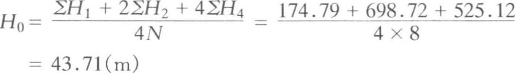 H 1 = H 0 -40 ×3‰+ 20 ×2‰=43.71 -0.12 + 0.04 =43.63(m)
