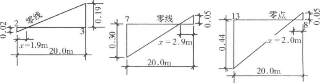 零线即施工高度为零的线,也就是挖方区和填方区的分界线。零线确定的方法是:先求出有关方格某边线(此边线的特点是一端为挖,另一端为填)上的“零点”(不挖不填的点),将相邻的零点连接起来,即为零线(图 1-2-7)。