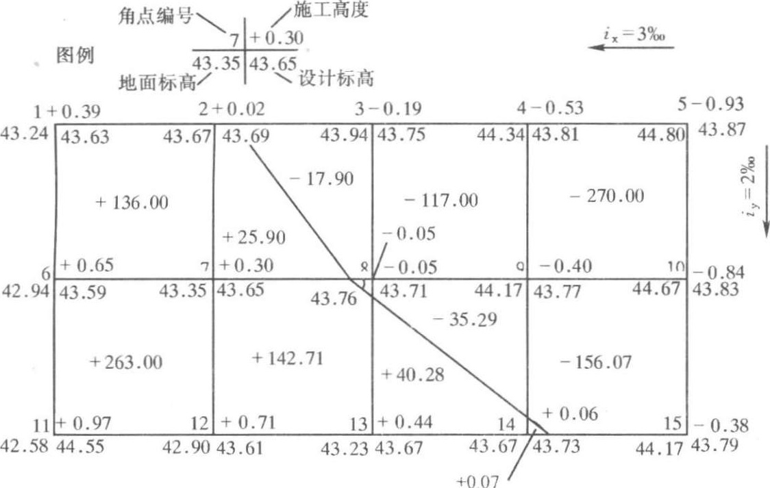 各角点施工高度,见图1-2-7中的施工高度诸值。