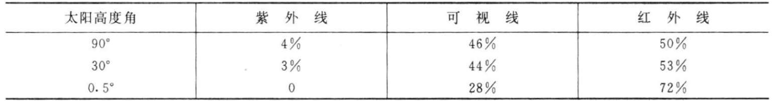 不同高度角时太阳光线的成分 表2-6-1