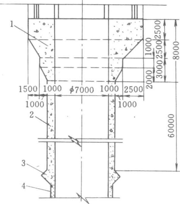 1—锁口圈;2—井颈壁;3—壁座;4—井筒身井壁