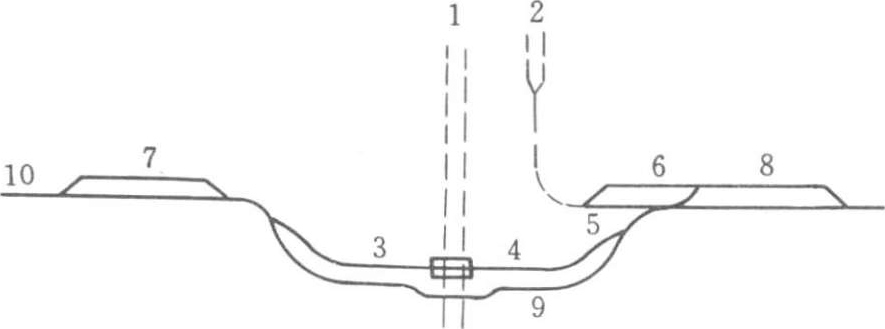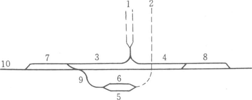 1—主斜井;2—副斜井;3—主井重车线;4—主井空车线;5—副井重车线;6—副井空车线;7、8—调车线;9—绕道;10—主要运输大巷