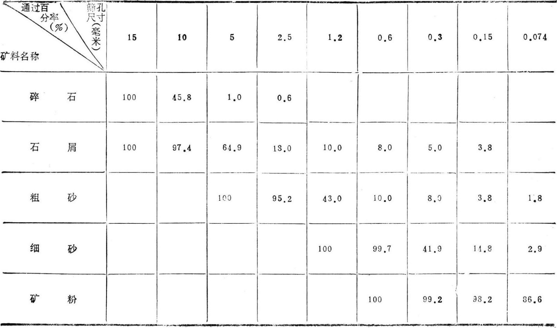 (2)已备材料为碎石(5~15毫米)、石屑、粗砂、细砂及石灰石矿粉等五种,其筛析试验结果见附表6.2。