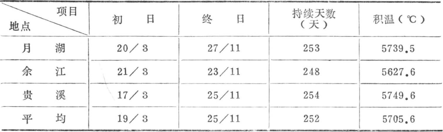 表1-1 各站点日均气温大于10℃积温表