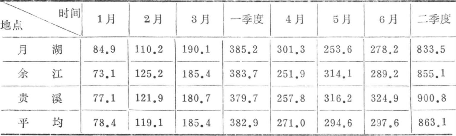 上半年约占全年雨量的69.7%,其中汛期(4-6月)雨量占全年雨量的48.3%;下半年约占全年雨量的30.3%,其中10-12月雨量只占全年的10.2%。
