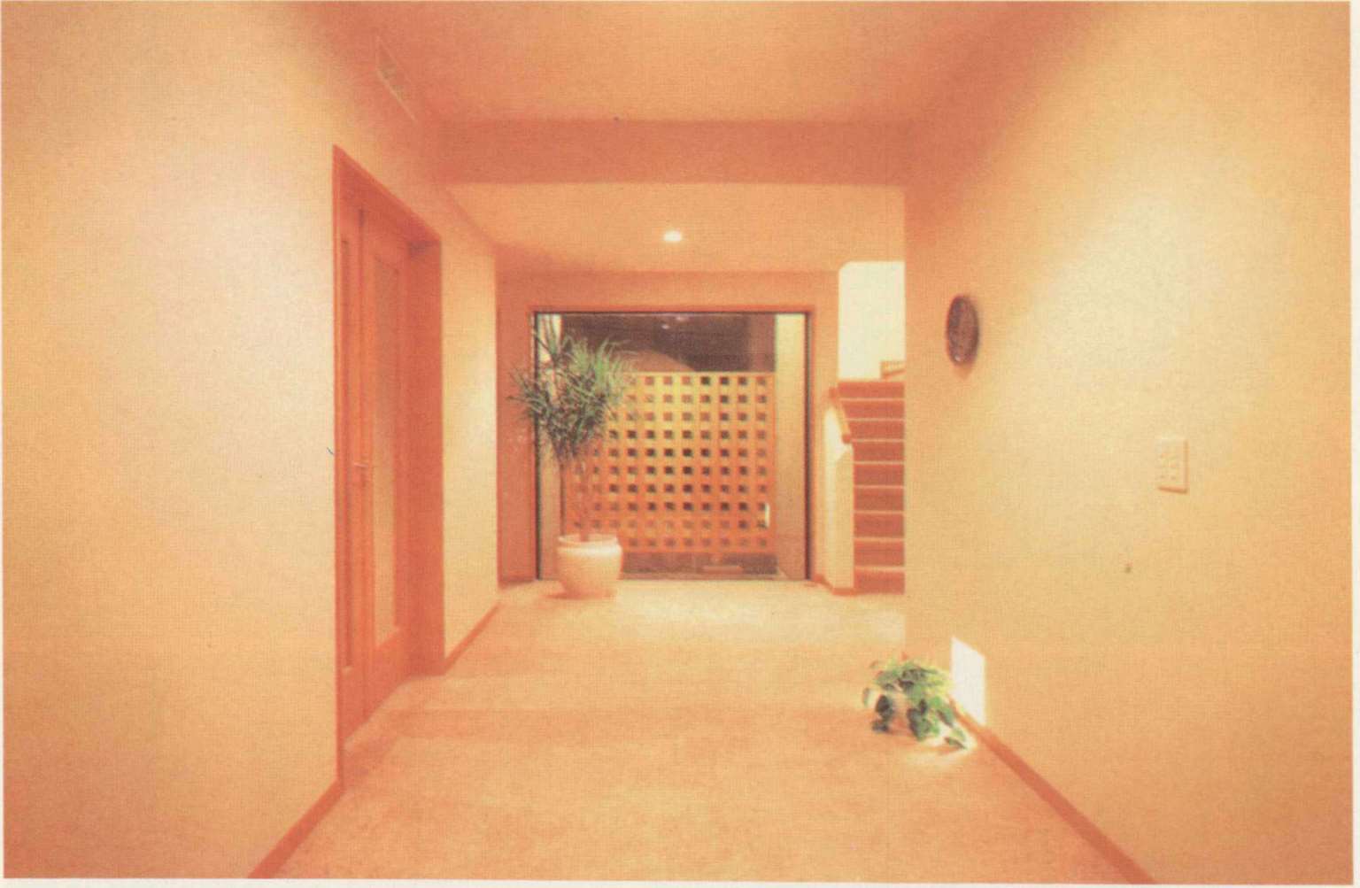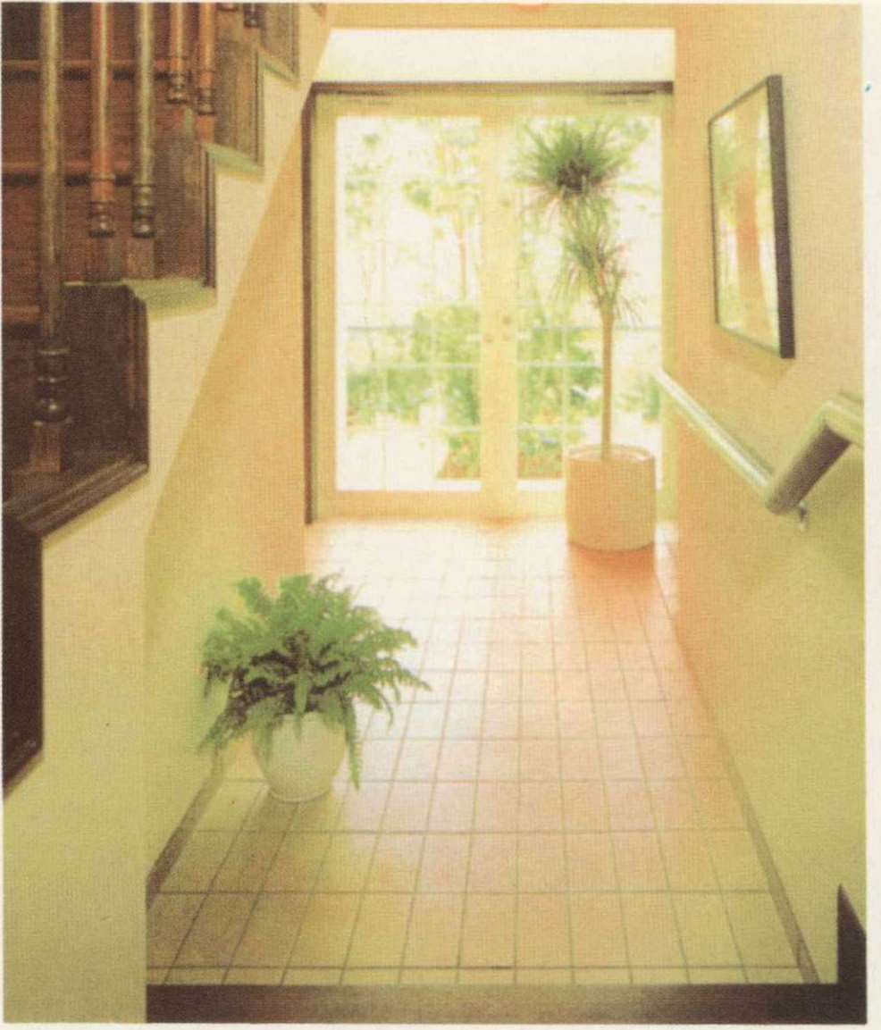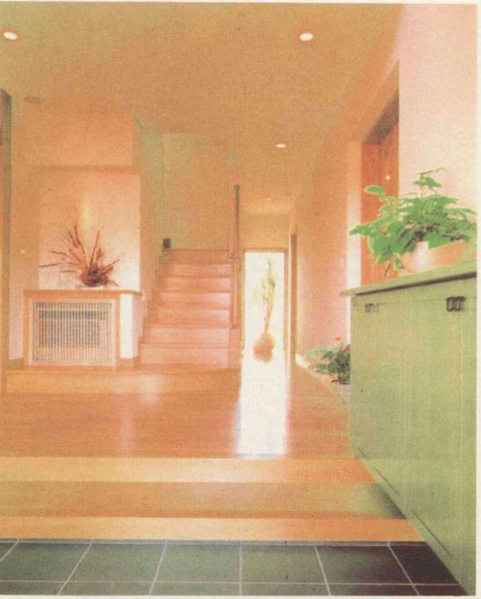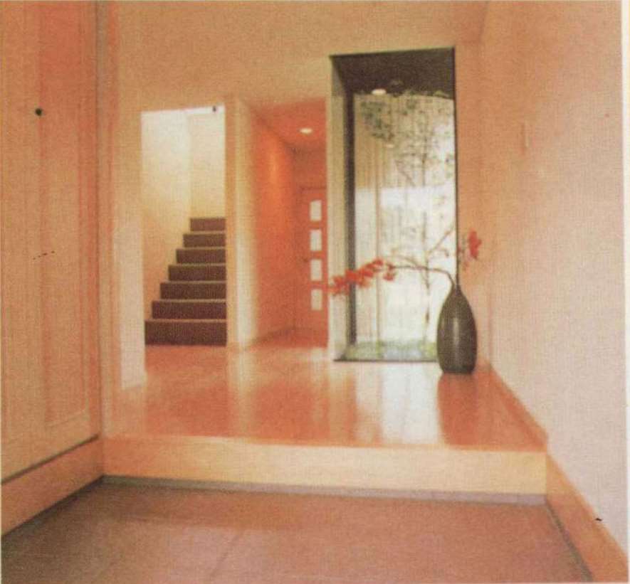 在门厅设计中,有时也强调房屋內外有别的特征外入口处常用一些易淸洗的石材地砖等材料,內部则使用木质地板或地毯等,使人得到一种归家的舒适感,感受到家中亲切、温馨的气氛。