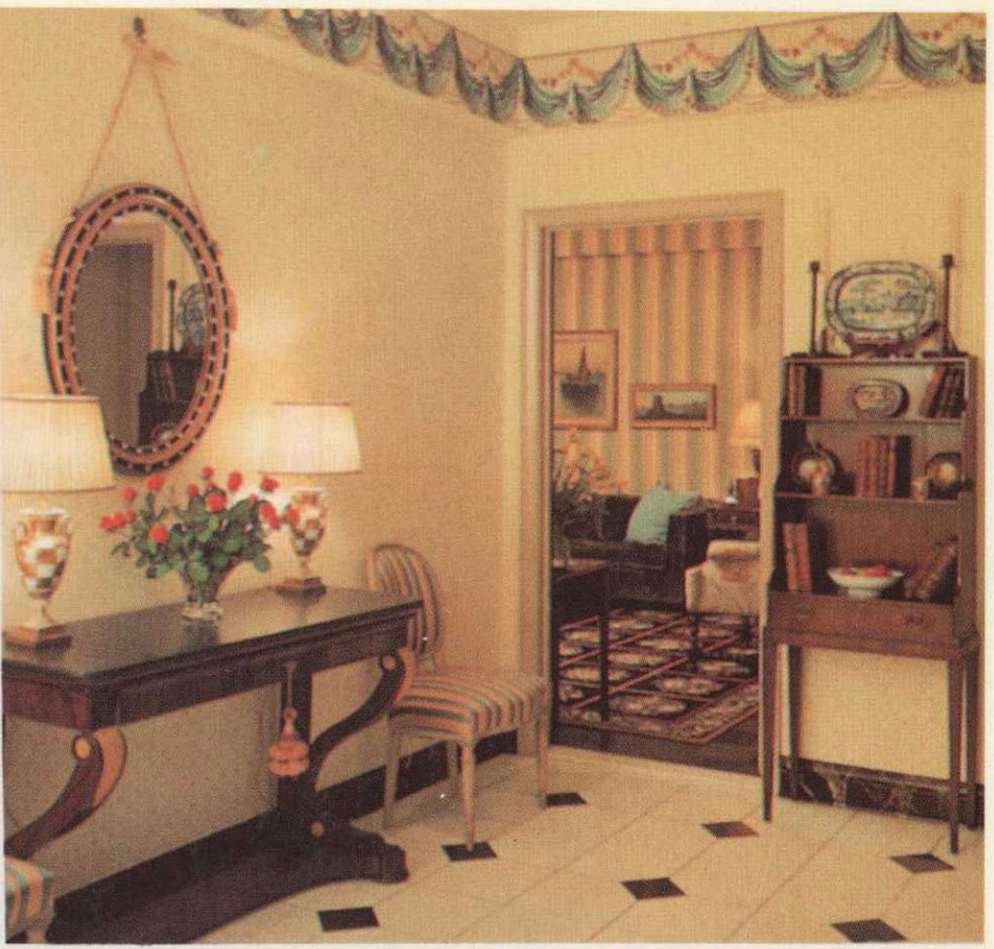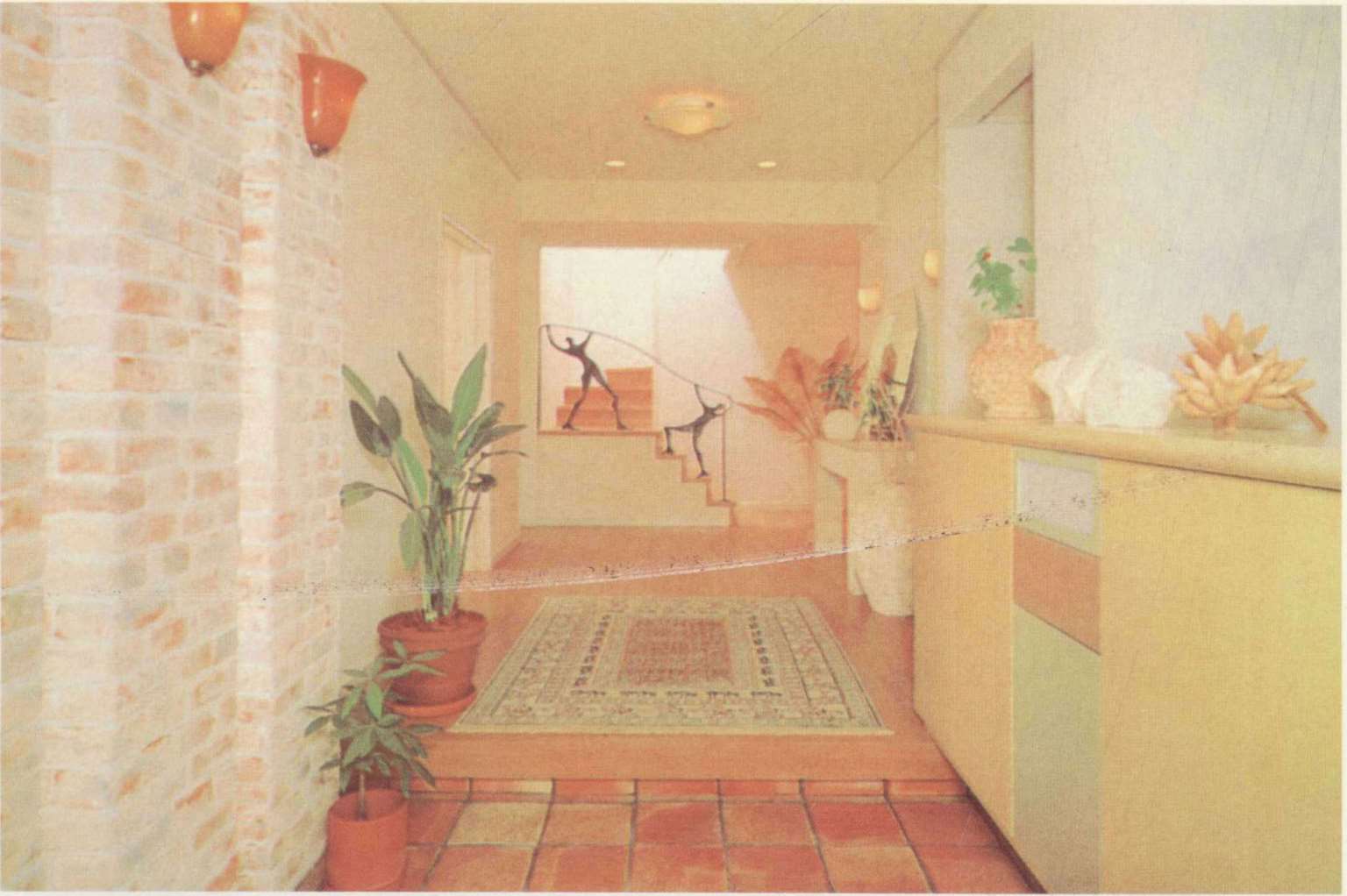 门厅,是一套住宅给人的第一印象,它通常直观地显示出这个家庭主人的生活情趣和审美观念。它是房屋內与外的缓冲区,是人们日常接送宾客和贮存外出用物品的空间。