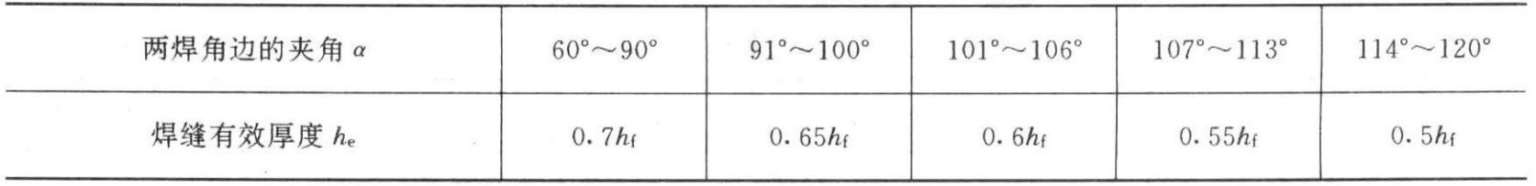 h e ——角焊缝的有效厚度,对直角角焊缝等于 0.7 h f , h f 为较小焊脚尺寸;