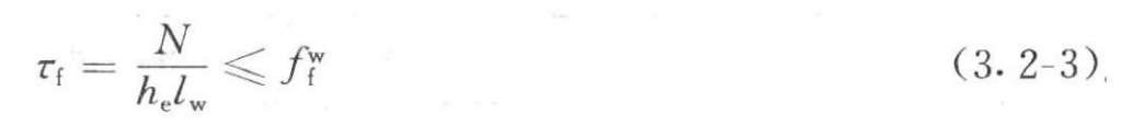 式中 σ f ——按焊缝有效截面( h e l w )计算,垂直于焊缝长度方向的应力;