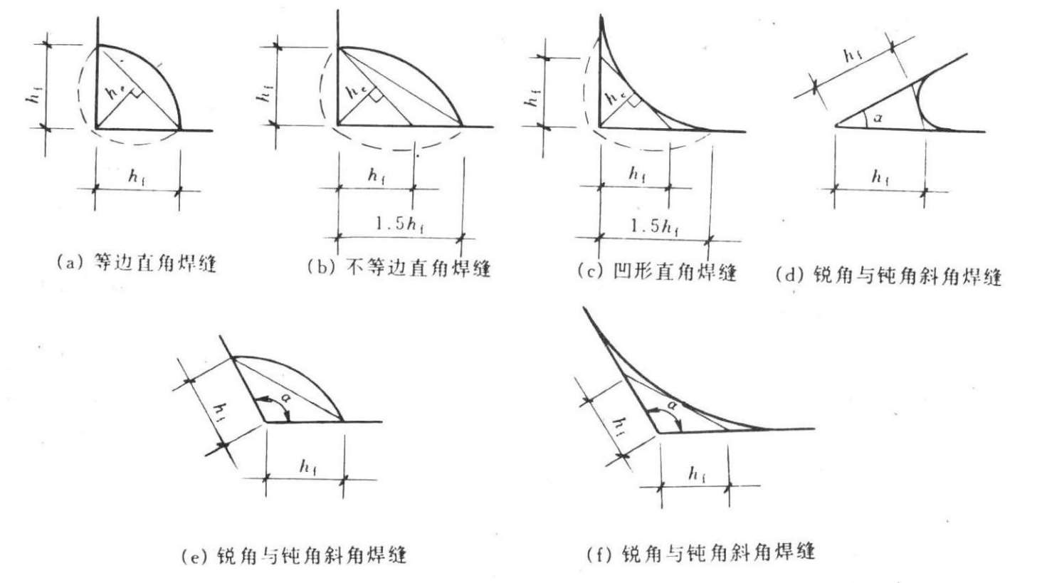 (1)角焊缝一般应采用等焊脚的直角角焊缝,当采用斜角角焊缝传力时,两焊脚边的夹角 α 宜在60°~120°间选用,并不应小于 45°及大于135° 。