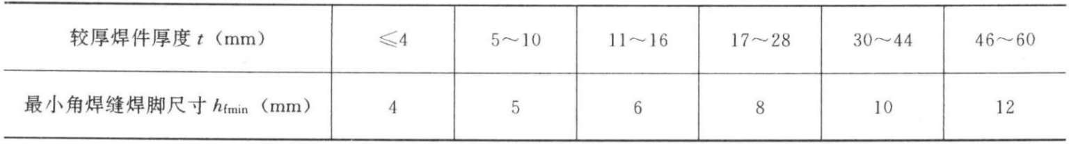 注:当焊件为Q345或Q390钢并板厚稍厚时,最小焊脚尺寸宜较表列值增大一级。