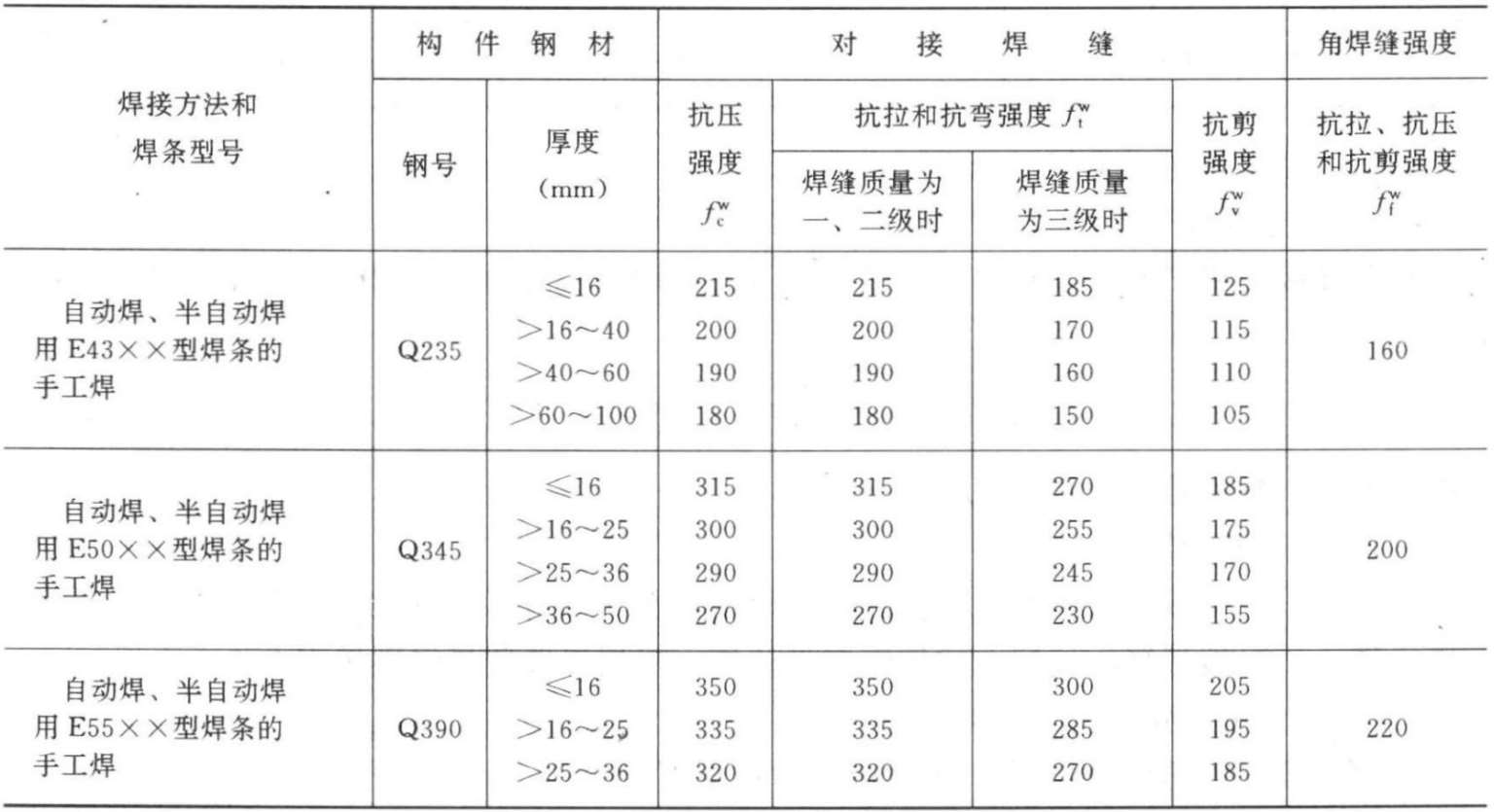 ——对接焊缝的抗拉、抗压强度设计值。根据焊缝质量级别按表3.2-2采用。