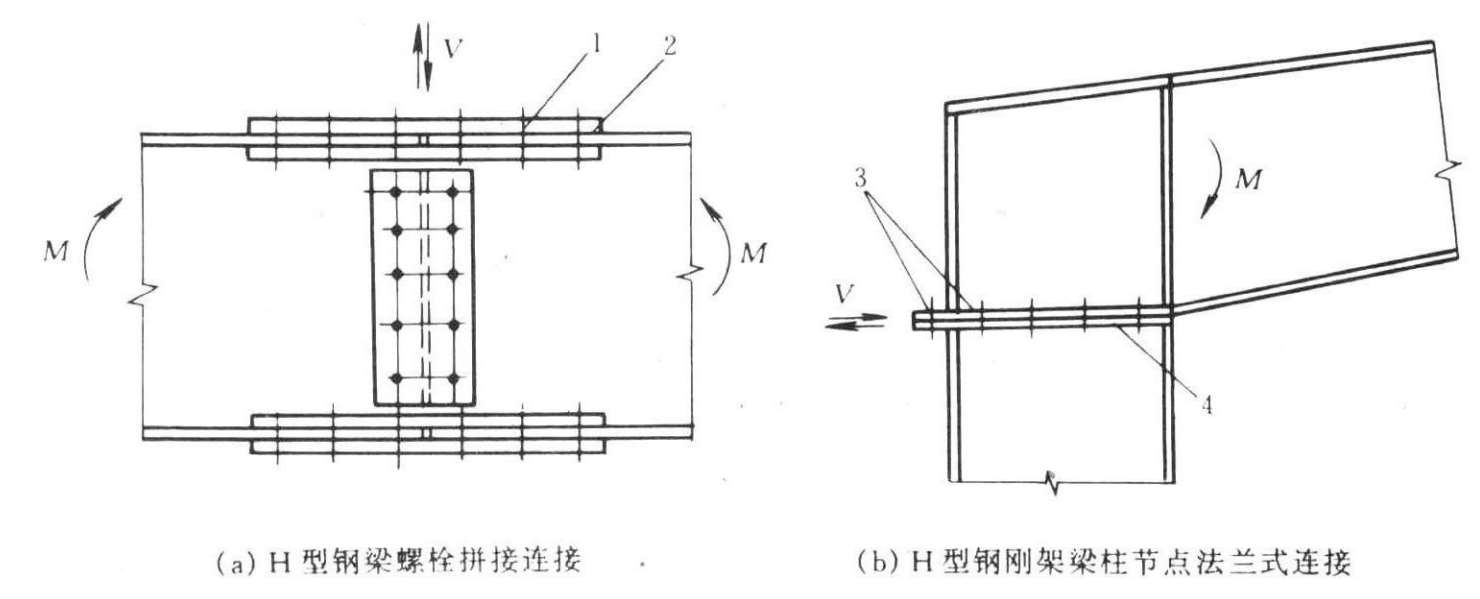 2—板件受栓杆挤压的承压面;3—同时受拉、剪的螺栓;4—法兰连接的端板